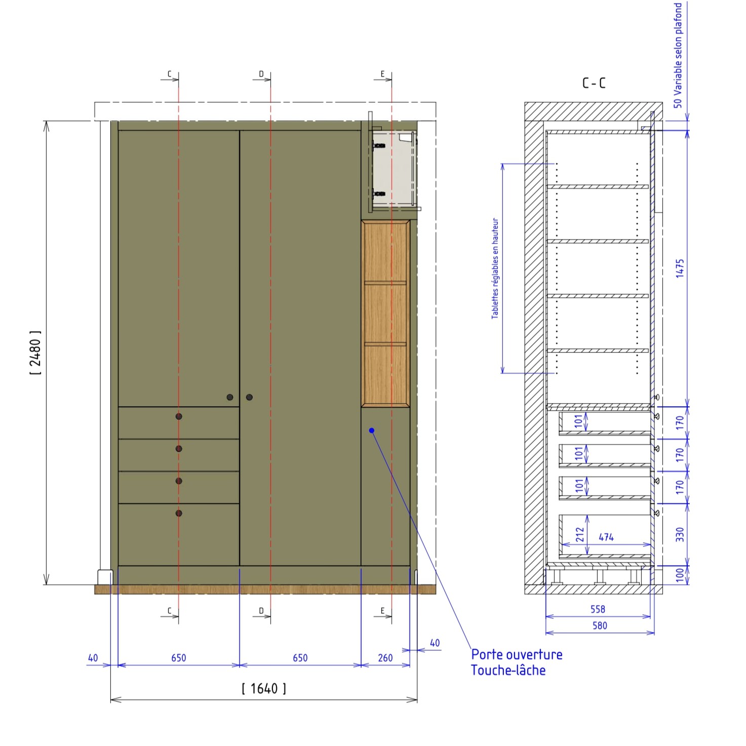 La réalisation de plans techniques de qualité est fondamentale pour transmettre les informations à l’atelier de production. Ils consistent à indiquer les dimensions techniques de fabrication, les types d’assemblages et de fixations, ainsi que les détails et subtilités de conception. L’objectif est d’informer au mieux pour éviter toute ambiguïté ou erreur !